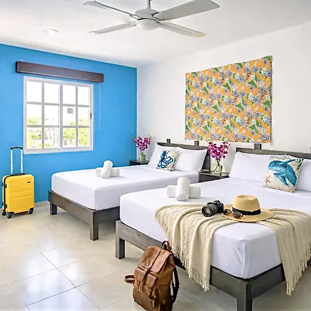 The 90 m² 2 Cozy & Spacious Units 500M To Beach Kitchen Fast Wifi Ac Great Value 4A8A Playa del Carmen apartment includes a terrace and is located approximately a 25-minute walk from the Esmeralda Point. To explore the area, guests can rent bicycles offered on site.